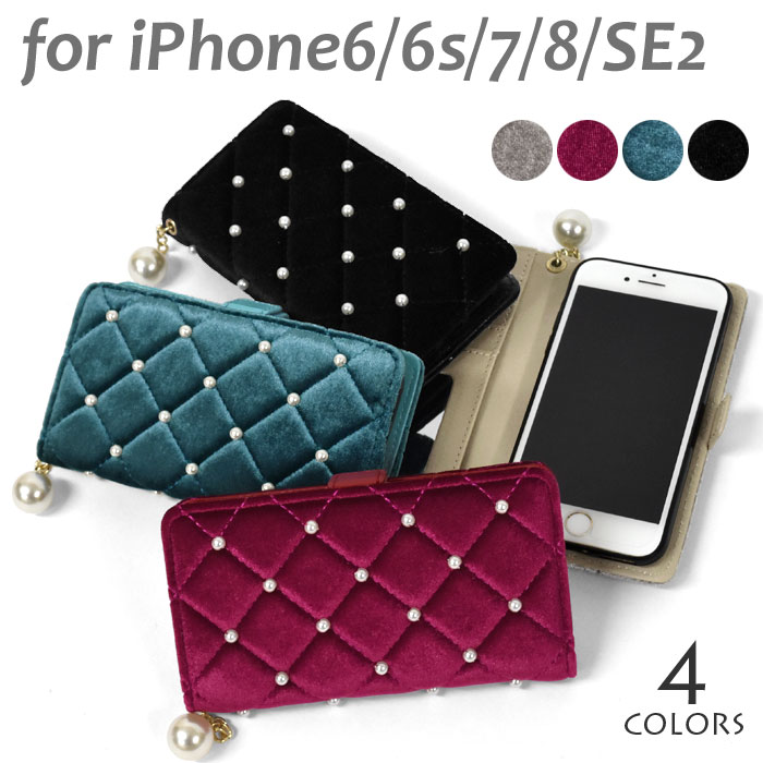 ベロア キルティング パール 手帳型 Iphoneケース レディース Iphone6 Iphone6s Iphone7 Iphone8 Iphonese Se Se2 第二世代 アイフォン7 アイフォン8 スマホケース スマホカバー オシャレ かわいい 薄型 カード収納 手帳型ケース ケース カバー ミラー付き 鏡 Ocruyo