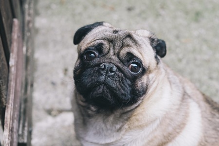 犬がちょっと寂しそうな顔をしている写真 かわいいペット パグの赤ちゃん 可愛い犬